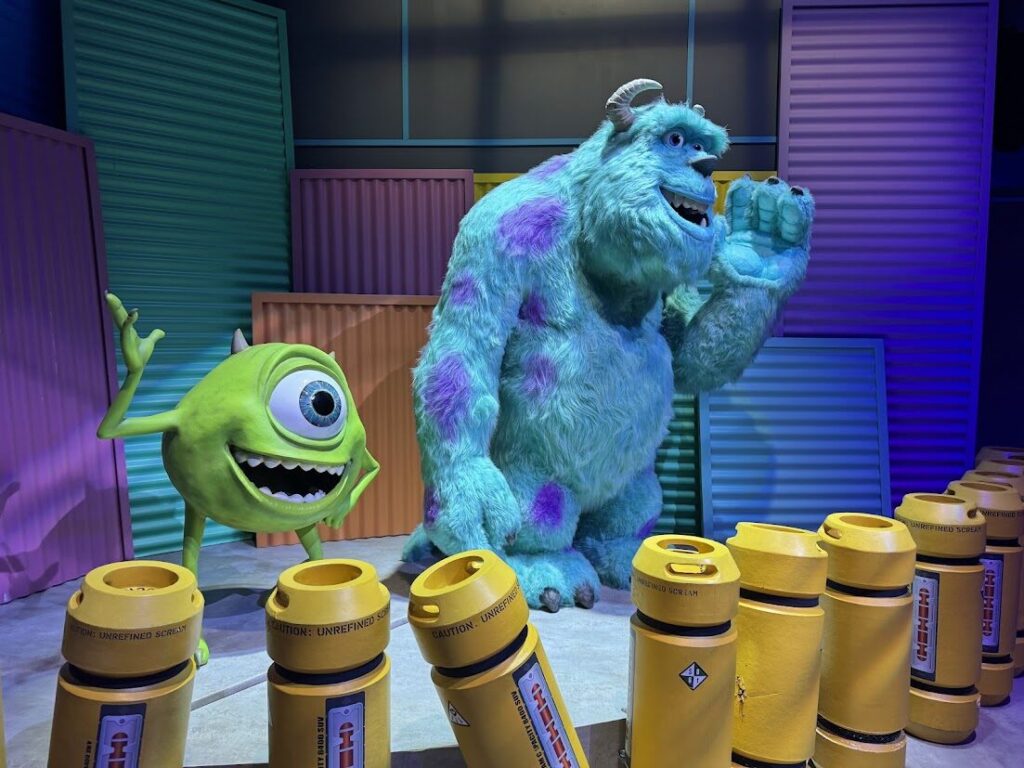 モンスターズ・インクエリアでは、スケアフロアっぽい空間でマイクとサリーが出迎えてくれます。